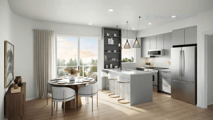 Two levels of parking will provide storage for 100 bicycles & 12 kayaks, as well as 83 resident parking stalls. All parking spaces are roughed-in for EV charging with an upgrade option for a charger installation available. Five uncovered commercial/visitor parking stalls and one Modo carshare space will be located at ground level, along the driveway leading to the parkade entry. In addition, every home will receive a one-year transit pass and a Modo Partnership Car Share membership.